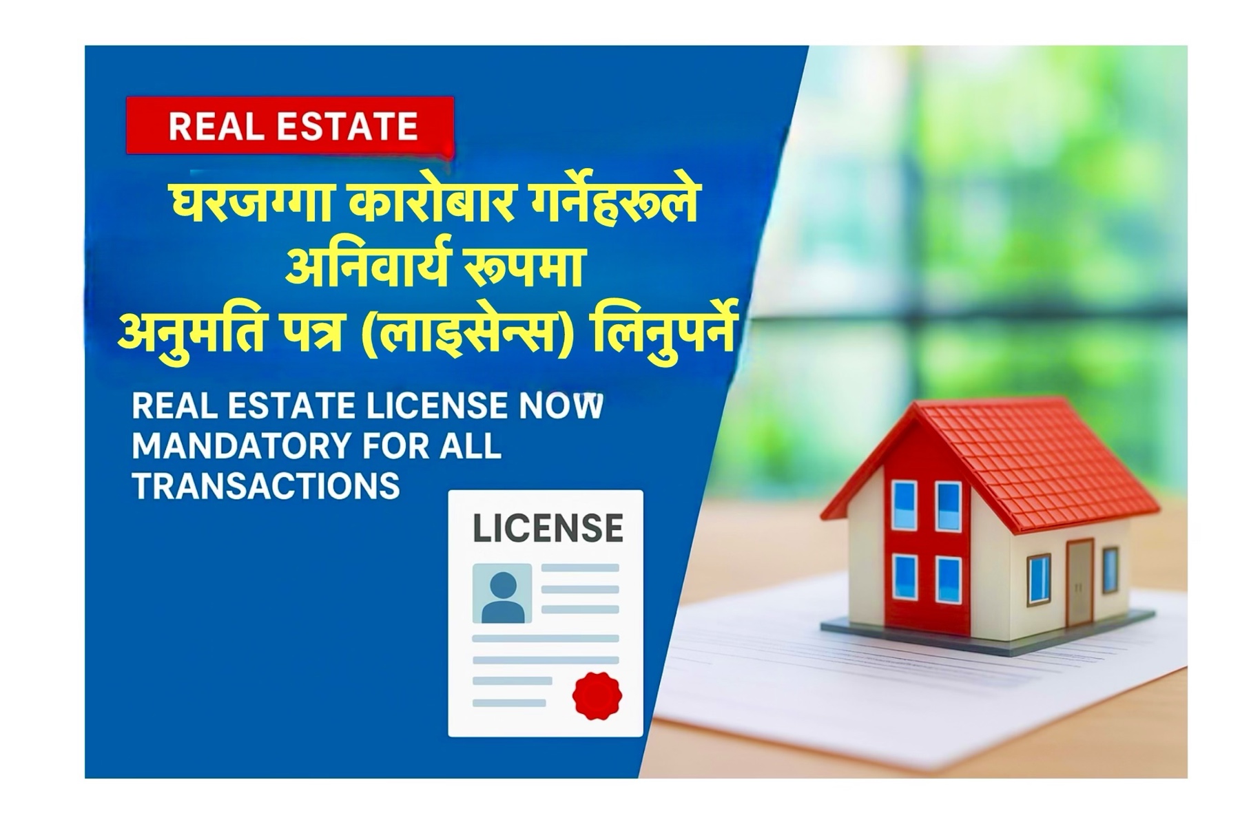 नेपालमा घरजग्गा कारोबार गर्नेहरूले अनिवार्य रूपमा अनुमति पत्र (लाइसेन्स) लिनुपर्ने !!