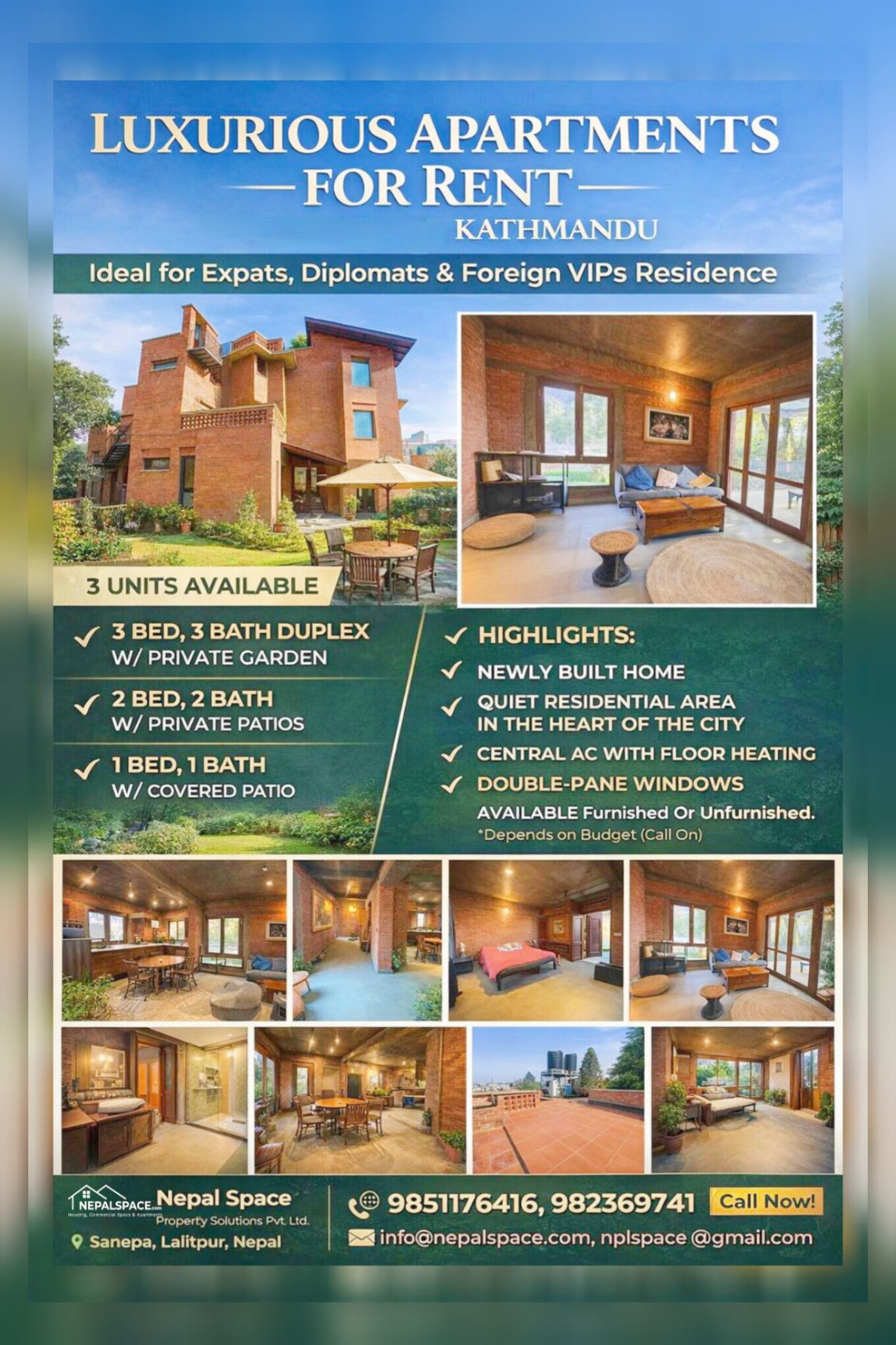 LUXURY APARTMENTS FOR RENT IN KATHMANDU. Ideal for Expats, Diplomats & VIP Residences. Experience refined urban living in a peaceful, secure, and premium residential neighborhood in the heart of Kathmandu. Designed for comfort, privacy, and sophistication — perfect for embassy officials, INGOs, diplomats, and expatriate families.